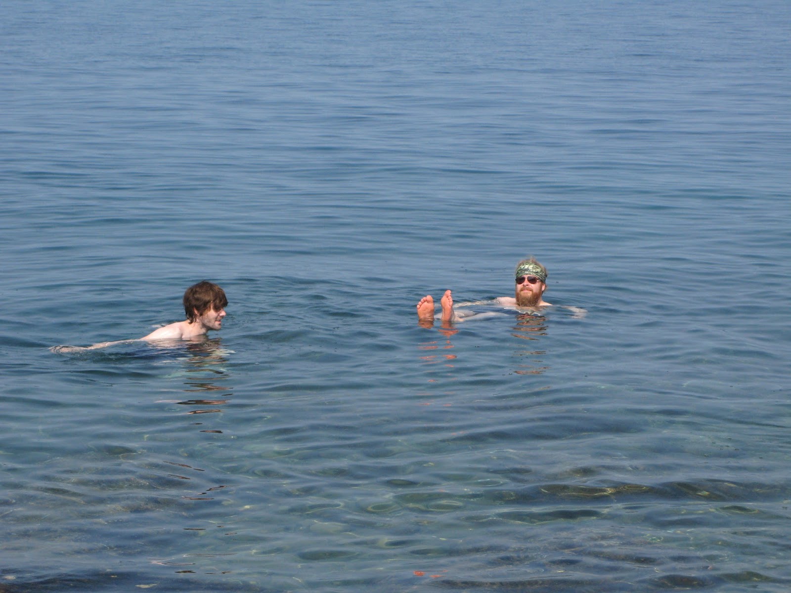 The breakfast was simple but nice; a selection of breads and meats with nice coffee and orange juice. We packed our stuff, paid our dues (about 25 euros each), and loaded the car before walking down to town. Arriving in the morning, we found some shade at the base of the lighthouse and made camp. I had to climb over the rocks to get into the water, but the swim was so refreshing.